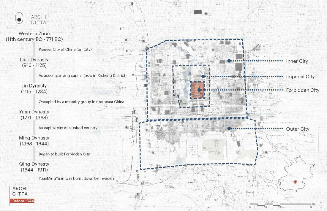 In the Archcitta and Cinecitta era, Beijing was a city revolving around the imperial palace. Yet starting in the telecitta and continuing in the megacity phase, Beijing experienced rapid expansion in both urban areas as well as population.